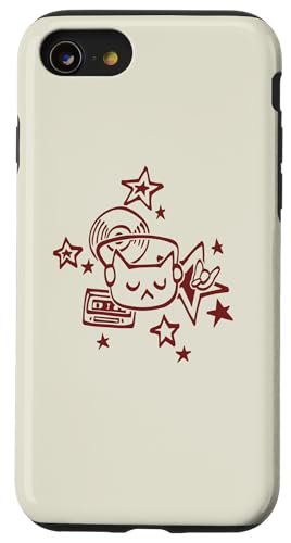 Y2K 80s Retro DJ Tomcat Cat avec Casque d'écoute Coque pour iPhone SE (2020) / 7/8