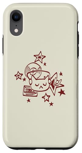 Y2K 80s Retro DJ Tomcat Cat avec Casque d'écoute Coque pour iPhone XR