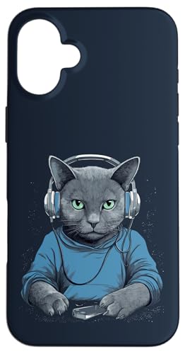 Casque D'écoute Musicien Chat Bleu Russe Chat Gamer Chats Coque pour iPhone 16 Plus