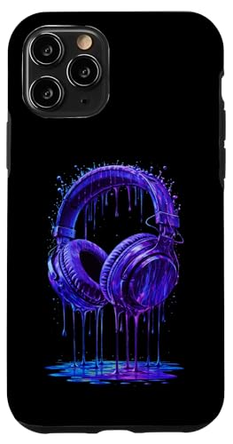 Casque Audio Bleu électrique DJ Gamer Musique Art Paint Drip Coque pour iPhone 11 Pro