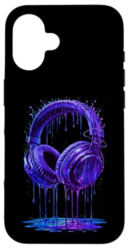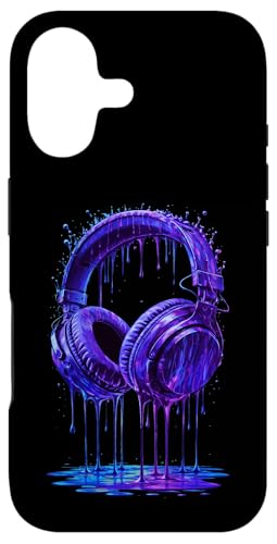 Casque Audio Bleu électrique DJ Gamer Musique Art Paint Drip Coque pour iPhone 16 Plus