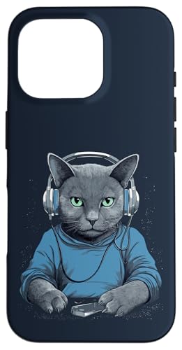 Casque D'écoute Musicien Chat Bleu Russe Chat Gamer Chats Coque pour iPhone 16 Pro