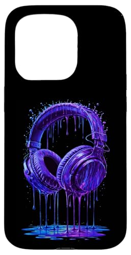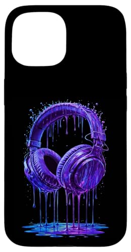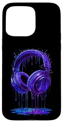 Casque Audio Bleu électrique DJ Gamer Musique Art Paint Drip Coque pour iPhone 15 Pro