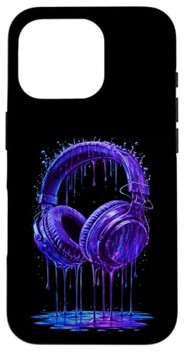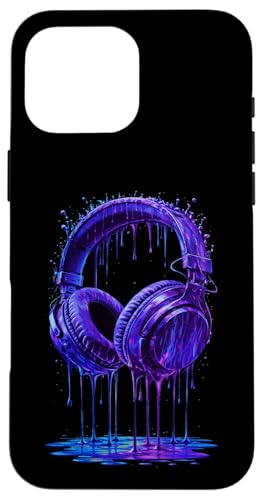 Casque Audio Bleu électrique DJ Gamer Musique Art Paint Drip Coque pour iPhone 16 Pro