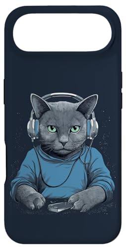 Casque D'écoute Musicien Chat Bleu Russe Chat Gamer Chats Coque pour iPhone Air