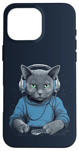 Casque D'écoute Musicien Chat Bleu Russe Chat Gamer Chats Coque pour iPhone 16 Pro Max