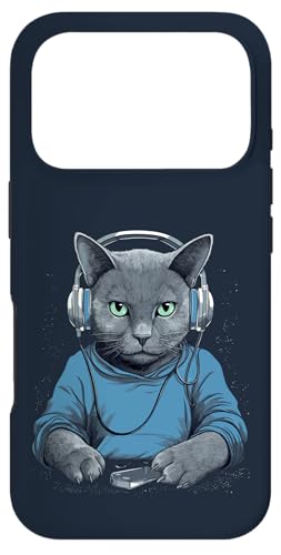 Casque D'écoute Musicien Chat Bleu Russe Chat Gamer Chats Coque pour iPhone 17 Pro