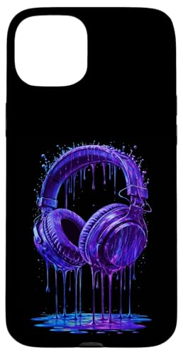 Casque Audio Bleu électrique DJ Gamer Musique Art Paint Drip Coque pour iPhone 15 Plus
