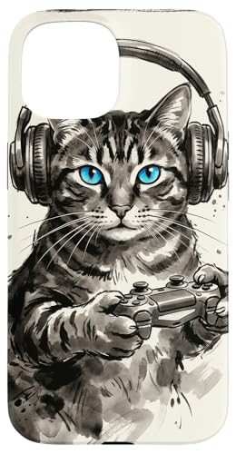 Gamer Cat Chat Japonais Chaton tigré avec Casque Nerd Coque pour iPhone 16