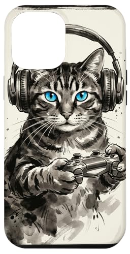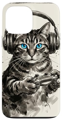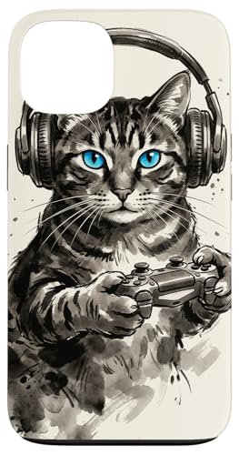 Gamer Cat Chat Japonais Chaton tigré avec Casque Nerd Coque pour iPhone 13 Pro Max