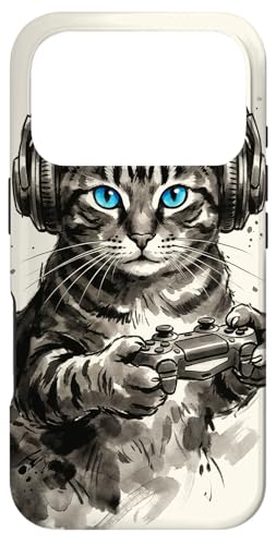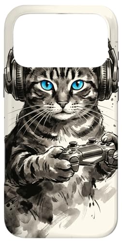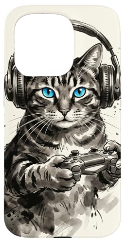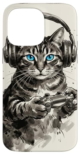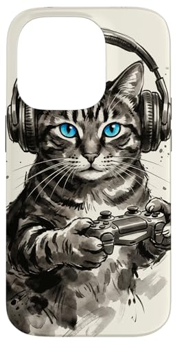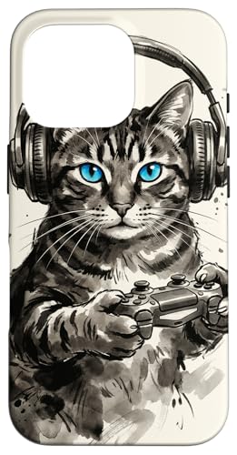 Gamer Cat Chat Japonais Chaton tigré avec Casque Nerd Coque pour iPhone 16 Pro