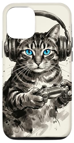 Gamer Cat Chat Japonais Chaton tigré avec Casque Nerd Coque pour iPhone 12 Mini