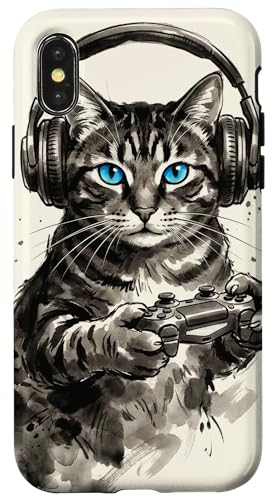 Gamer Cat Chat Japonais Chaton tigré avec Casque Nerd Coque pour iPhone X/XS