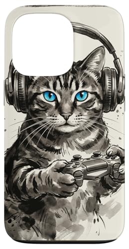 Gamer Cat Chat Japonais Chaton tigré avec Casque Nerd Coque pour iPhone 13 Pro
