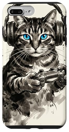 Gamer Cat Chat Japonais Chaton tigré avec Casque Nerd Coque pour iPhone 7 Plus/8 Plus
