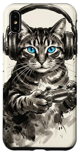Gamer Cat Chat Japonais Chaton tigré avec Casque Nerd Coque pour iPhone XS Max