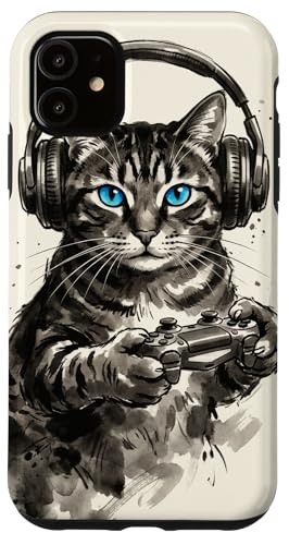 Gamer Cat Chat Japonais Chaton tigré avec Casque Nerd Coque pour iPhone 11