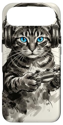 Gamer Cat Chat Japonais Chaton tigré avec Casque Nerd Coque pour iPhone 17 Pro Max
