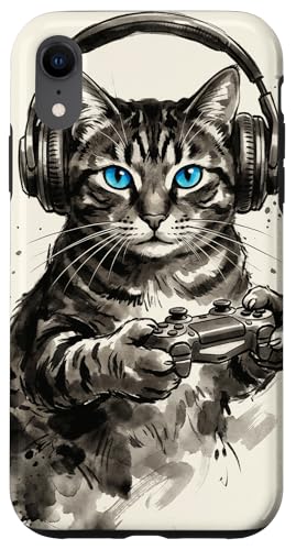 Gamer Cat Chat Japonais Chaton tigré avec Casque Nerd Coque pour iPhone XR