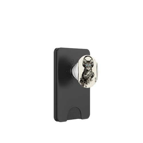 Casque D'écoute Musicien Chat Bleu Russe Chat Gamer Chats PopSockets PopWallet pour MagSafe