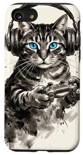 Gamer Cat Chat Japonais Chaton tigré avec Casque Nerd Coque pour iPhone SE (2020) / 7/8