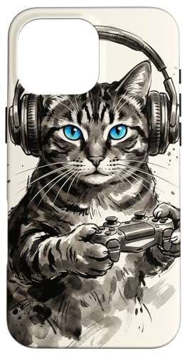 Gamer Cat Chat Japonais Chaton tigré avec Casque Nerd Coque pour iPhone 16 Pro Max