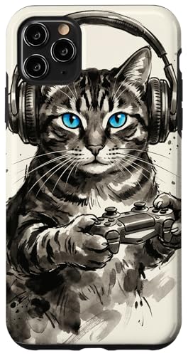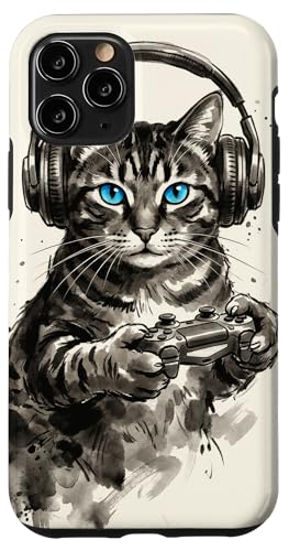 Gamer Cat Chat Japonais Chaton tigré avec Casque Nerd Coque pour iPhone 11 Pro