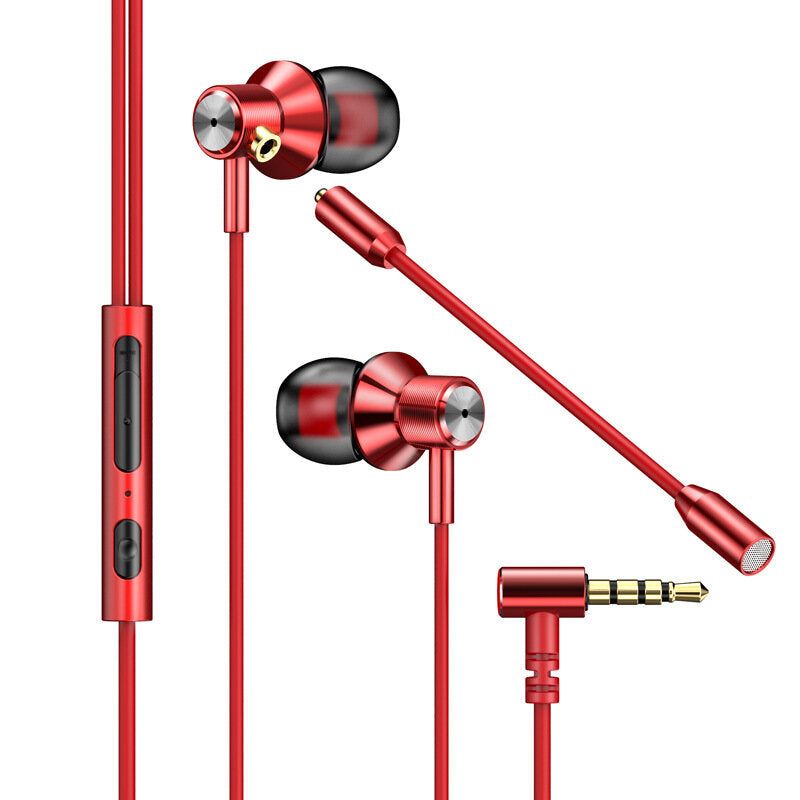 Casque Gamer 3,5 mm Jack Filaire écouteurs Sports Gaming écouteurs Stéréo Métal écouteurs avec Micro Amovible pour Téléphone PC, Rouge