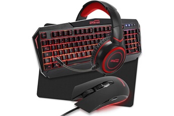 Pack Pro Gamer Redemption 5 pièces: Clavier, Souris & Tapis, Casque & Adaptateur. Retro-éclairage Rouge. AZERTY & USB