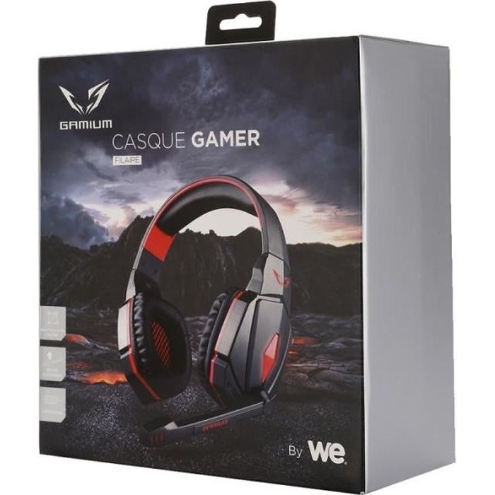 Casque Gamer - Gamium - Noir/Rouge - Filaire - Circum-aural - Micro omnidirectionnel