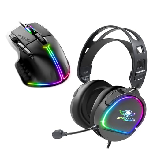 Spirit Of Gamer, Pack Souris + Casque Gamer Filaire RGB, Casque Gaming Noir avec Micro, Souris Gamer Filaire pour PC 12800 DPI avec 8 Boutons Programmables Dont 1 Rapid Fire