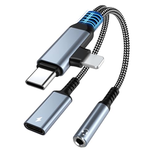 3 en 2 Adaptateur USB C + Lightning Jack 3,5 mm avec Charge Rapide Adaptateur de OTG, Adaptateur Casque PD 60W Charge Rapide Hi-Res Type C Lightning Audio Ecouteur Splitter pour iPhone Samsung iPad