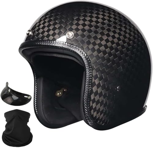Demi-Casque de Moto en Fibre de Carbone Casque Jet Rétro ECE Homologué Casques Vintage à Face Ouverte pour Cruiser Chopper Scooter 3K,XXL=62CM