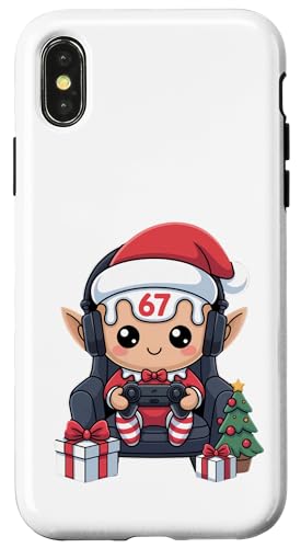 Chaise de Gamer Elfe de Noël, Casque d'écoute, Jeu de Coque pour iPhone X/XS