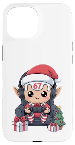 Chaise de Gamer Elfe de Noël, Casque d'écoute, Jeu de Coque pour iPhone 15