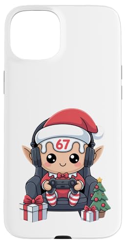 Chaise de Gamer Elfe de Noël, Casque d'écoute, Jeu de Coque pour iPhone 15 Plus