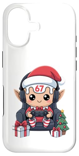 Chaise de Gamer Elfe de Noël, Casque d'écoute, Jeu de Coque pour iPhone 17