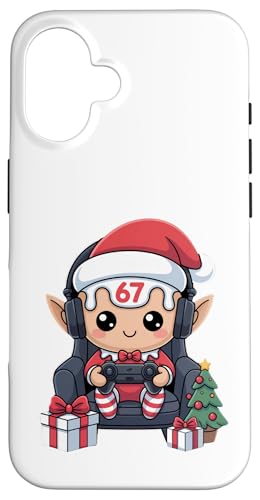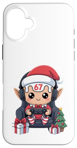 Chaise de Gamer Elfe de Noël, Casque d'écoute, Jeu de Coque pour iPhone 16