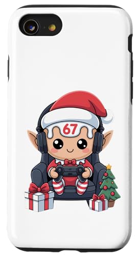 Chaise de Gamer Elfe de Noël, Casque d'écoute, Jeu de Coque pour iPhone SE (2020) / 7/8
