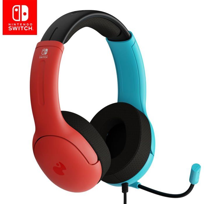 TIANYI-Pdp Gaming Lvl40 Stereo Casque avec Mic pour Nintendo Switch - Pc, Ipad, Mac, laptop Compatible - Noise Cancelling Microphone, Soft Compourt On Ear Headphones, 3.5 Mm Jack - Neon Bleu-Rouge
