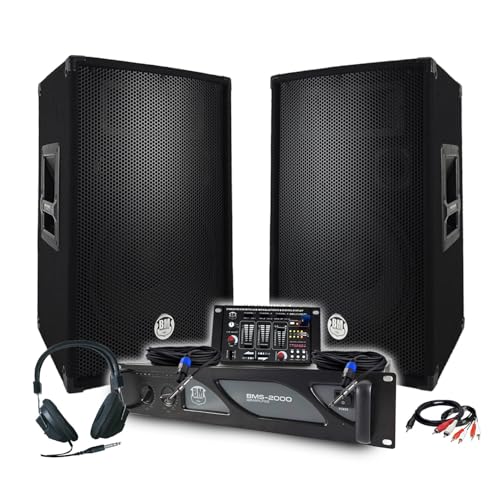 Pack Sono DJ BM Bmsonic Amplificateur 2000W, Paire d'Enceintes Passives 2x600W, Table de Mixage, Casque DJ, Câbles et Micro