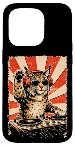 DJ Lynx avec Casque Table de mixage Rétro Vintage Party Disco Coque pour iPhone 15 Pro
