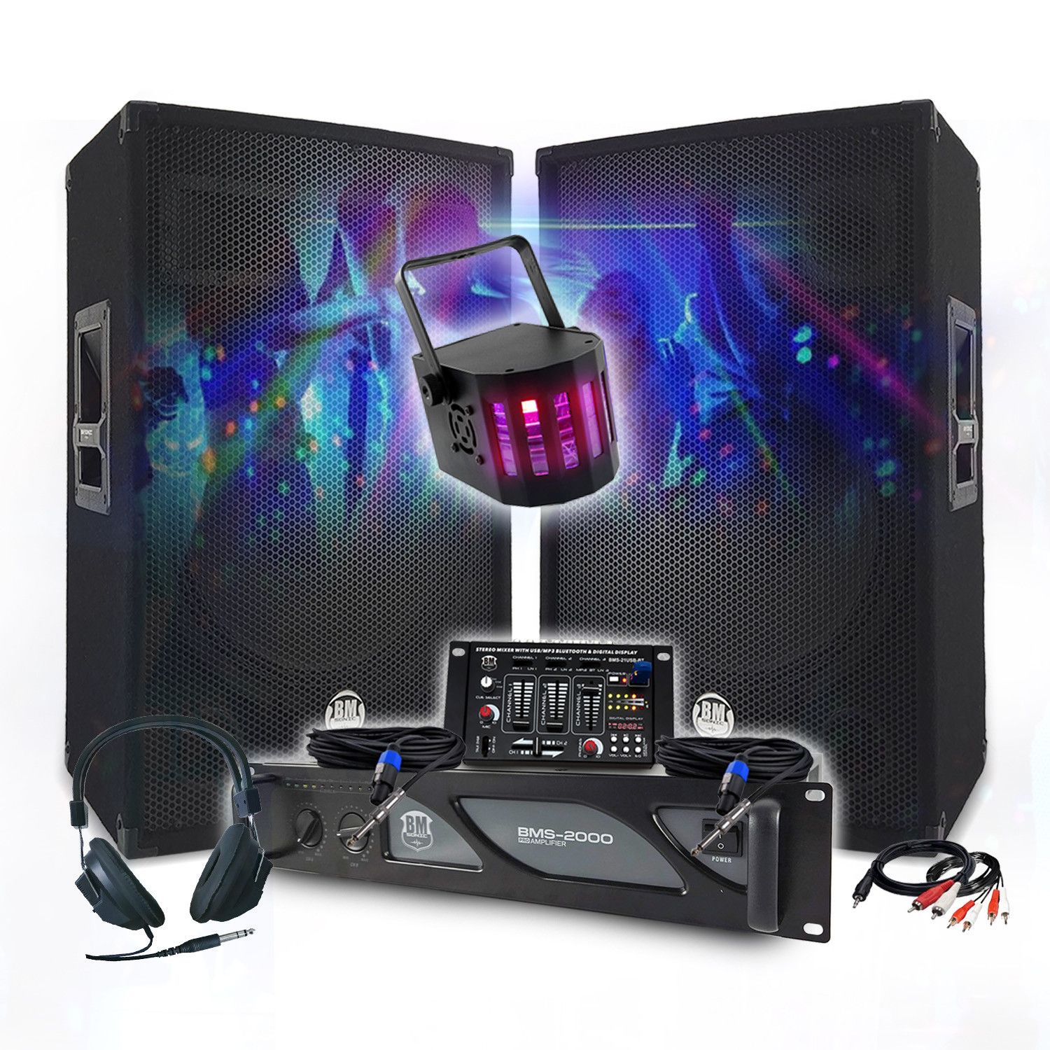 Pack Sono DJ BM Bmsonic Ampli 2000W, Enceintes 2x600W, Table de Mixage, Casque Câbles Micro, LED, Fête Soirée, Bar Salle des fêtes