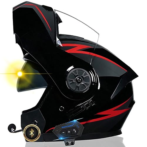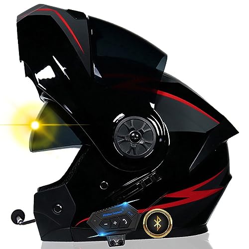 Casque Moto Flip Up Bluetooth, Casque Moto Street Bike avec Double Visière, Casque Modulable Bluetooth pour Adultes Hommes Femmes, Approuvé Dot/ECE (55~62cm)