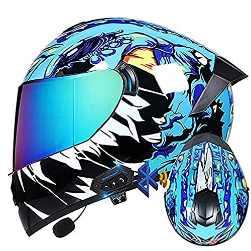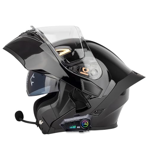 Casque Modulable Moto Bluetooth Intégraux Racing Motocross avec Haut-Parleur IntéGré Double Visière,ECE Homologué pour Scooter· Casque de Moto Homme et Femme 6,XXXL=65-66