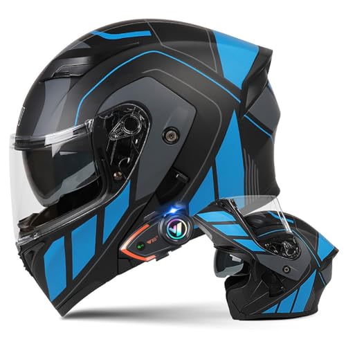 Casque Modulaire Intégré Bluetooth,Modulable Casque Moto avec Double Visière pour Scooter,Mp3 pour Hommes et Femmes Homologué Intercom Dot ECE de Réponse Automatique P,XL=(61-62CM)