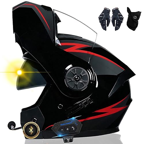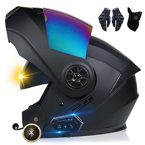 Casque Moto Bluetooth Modulable Casques Integral Moto Casque de Moto Protection ECE Homologué Double Visière Casque Scooter Réponse Automatique Intercom pour Adulte Homme et Femme