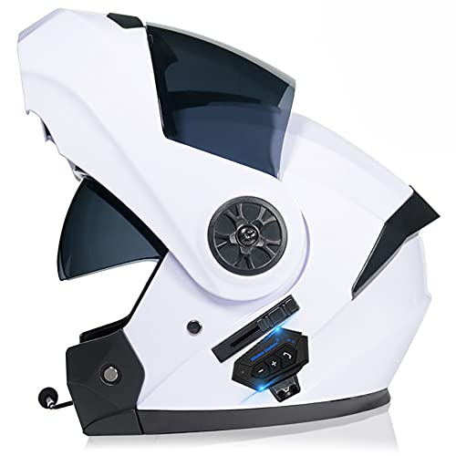 Bluetooth Intégré Casque Modulable Moto ECE Homologué avec Double Visière Anti-buée Casques Intégraux Racing Motocross Homme Femme 55~60cm