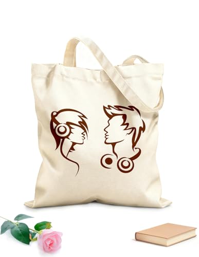 XIARON Sacs en toile à motifs personnalisables Couple musical Casque audio Musique ado tissu épais de 340g/m² S'accorde avec les vêtements M Café