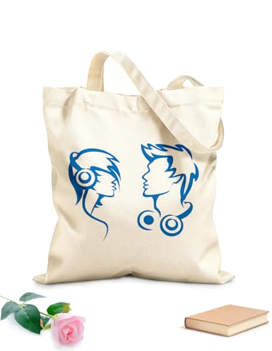 XIARON Sacs femme en calicot Couple musical Casque audio Musique ado tissu épais de 340g/m² Pliable M Bleu